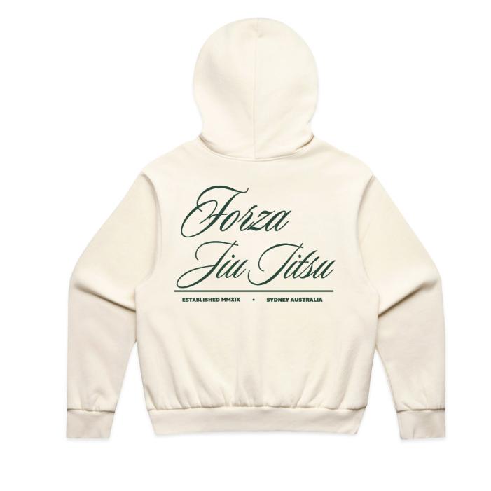 Forza print on front left chest and Forza Jiu Jitsu on the back